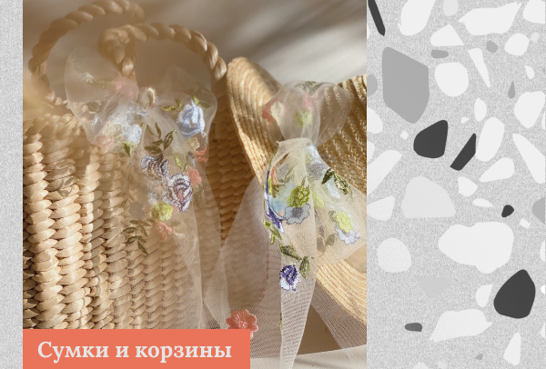 Кроме того, вы найдете здесь стильные аксессуары для волос, трикотажные и кружевные митенки, плетеные летние сумочки и корзинки.