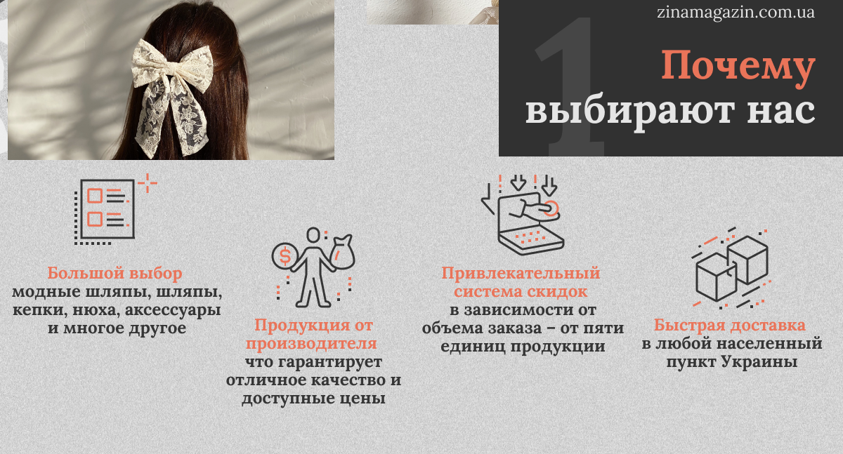 - Разнообразный ассортимент. В каталоге представлены модели разных дизайнов, из модных материалов в широкой цветовой гамме: от колоритных восточных уборов до стильных кожаных беретов, меховых панамок и соломенных шляп.